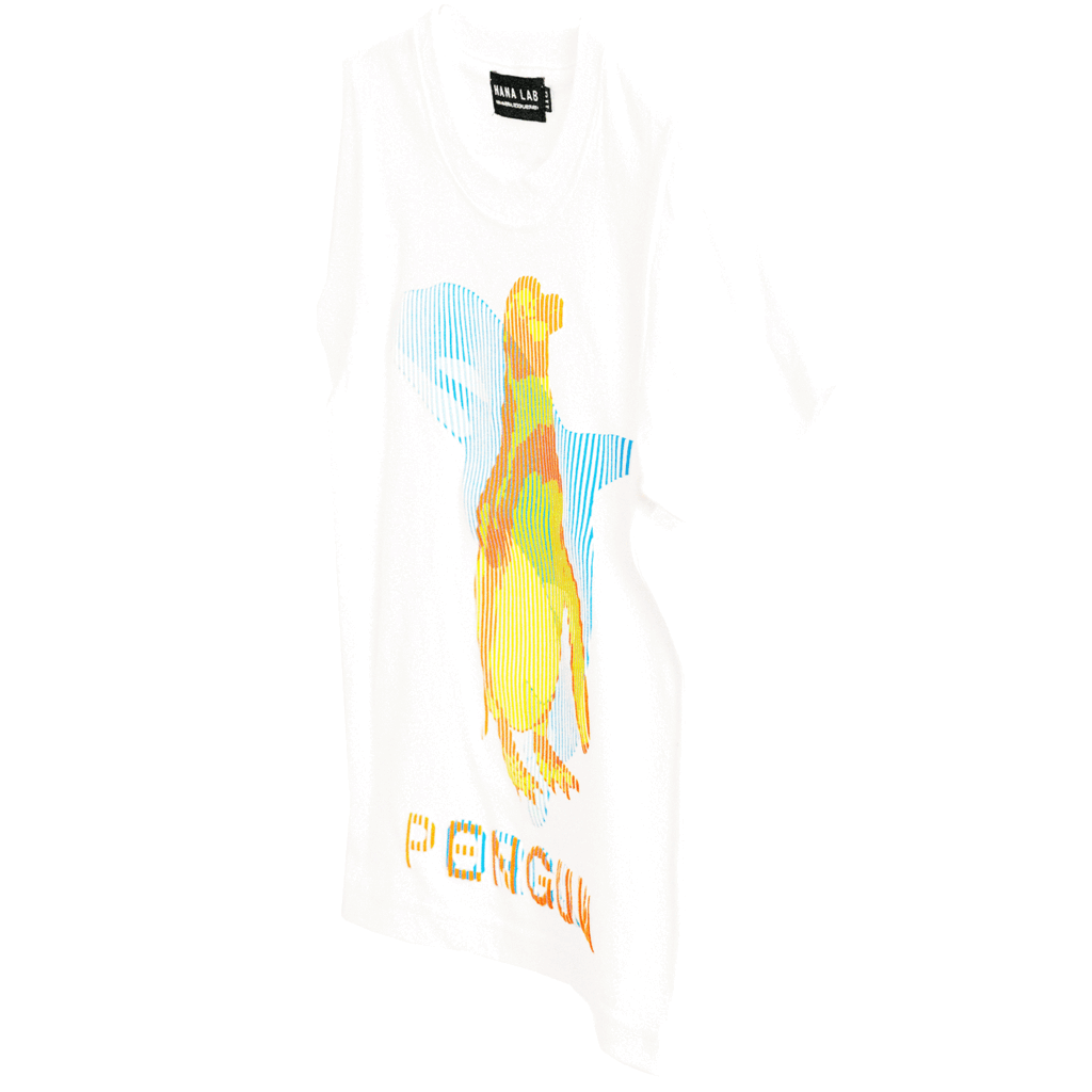 Dynamic visual lenticular effects are visible to the viewers by the movement of the people who wear the T-shirts with this print on.