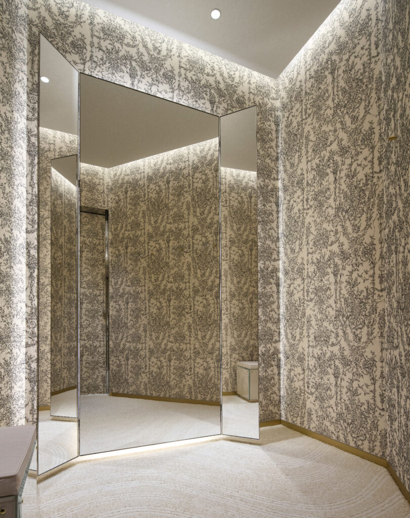 東京・代官山にオープンしたDiorの新たな拠点「Dior Bamboo Pavilion」において、フィッティングルーム2部屋の壁面を覆う特別なタペストリー作品を制作いたしました。「Dior Bamboo Pavilion」は、ブティックの枠を超えた建築とアートの総合的プロジェクトであり、パリ本店「30 モンテーニュ」のファサードをゴールドに染め上げたバンブーで再解釈した建築など、文化と匠の技の融合が随所に見られます。