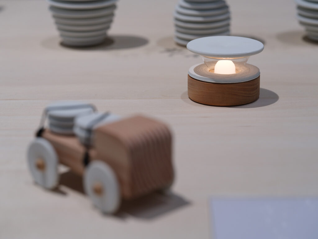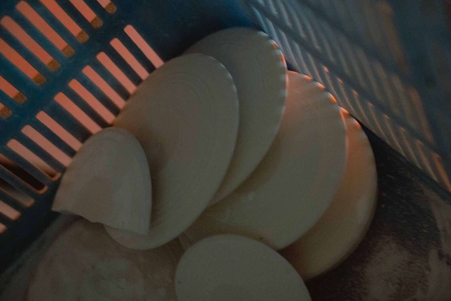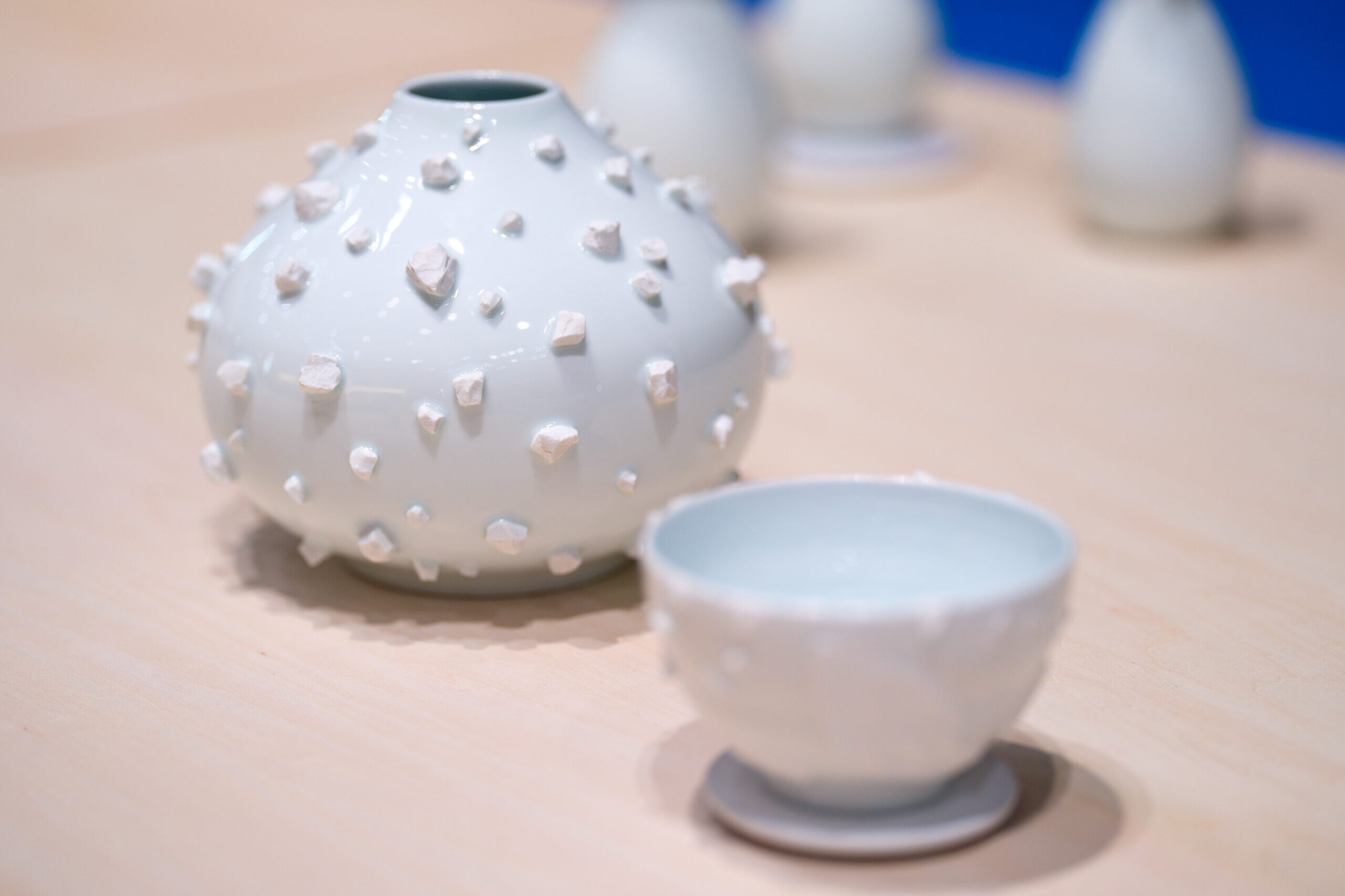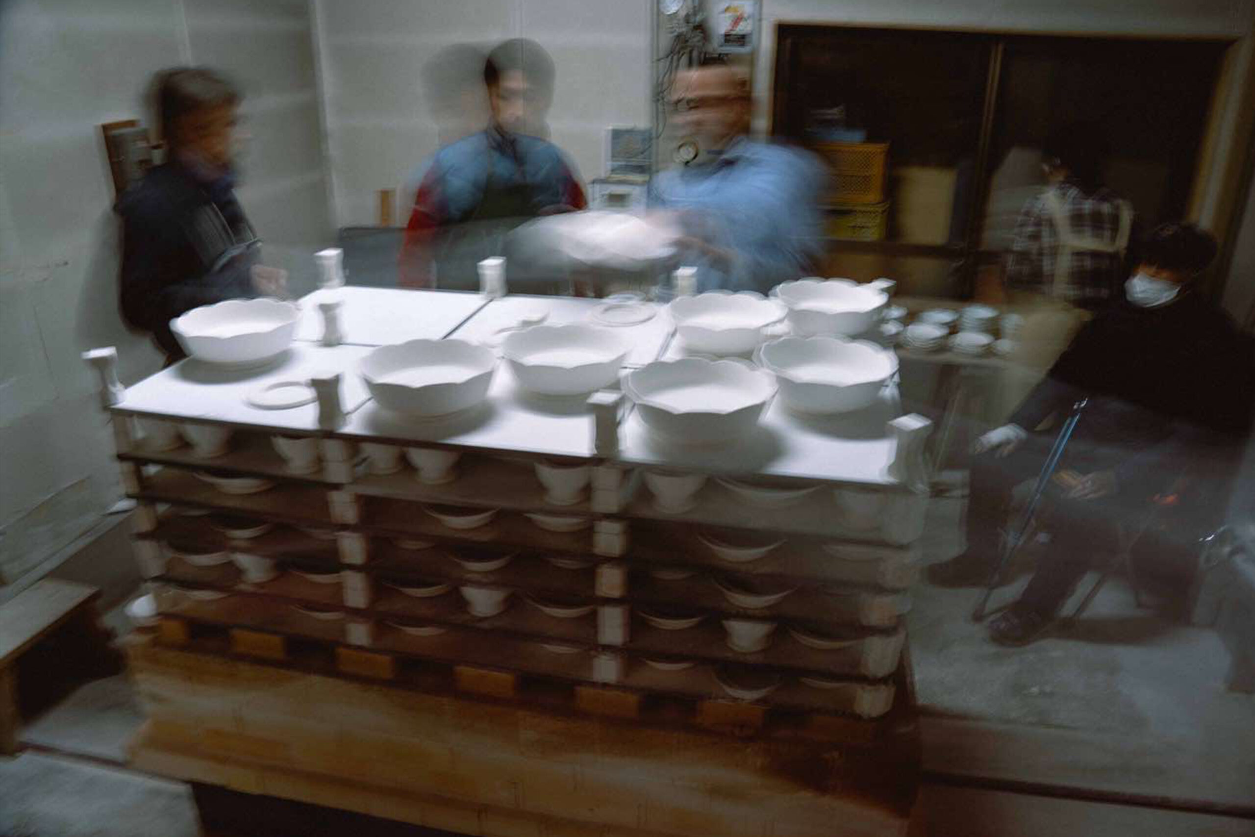 ハマは丸く白い、一見なんの変哲もない焼物ですが、非常に美しいです。しかし、ハマの役割はあくまでも作品をつくるための道具にすぎず、その役割を終えたら捨てられます。焼物は土の状態だと再生できますが、焼成してしまうと化学変化を起こし、産業廃棄物に分類されます。毎年焼物の産地ではハマが大量に廃棄されていきます。プロダクトデザイナーの鈴木と、メンバーの白水とで井上の工房に訪れた時にそれを見て、これはなにか形にできるのではないかと発想をはじめたのが私たちのプロジェクトの初動です。