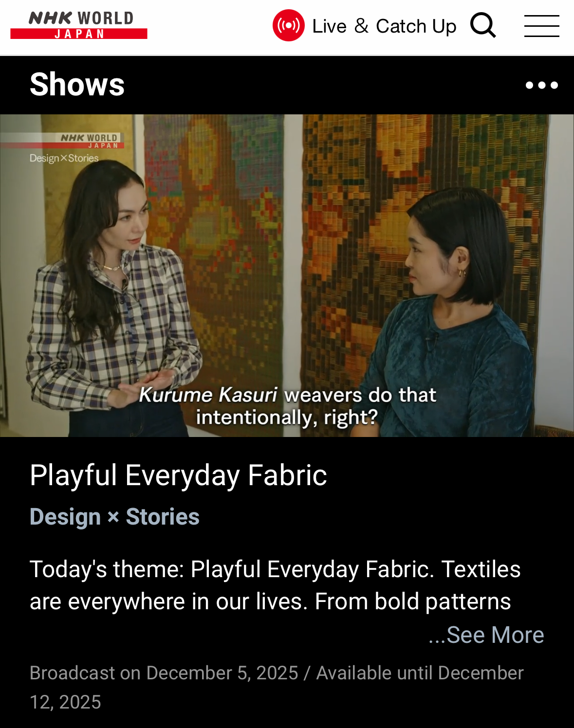 放映メディア : NHK WORLD「Design × Stories」