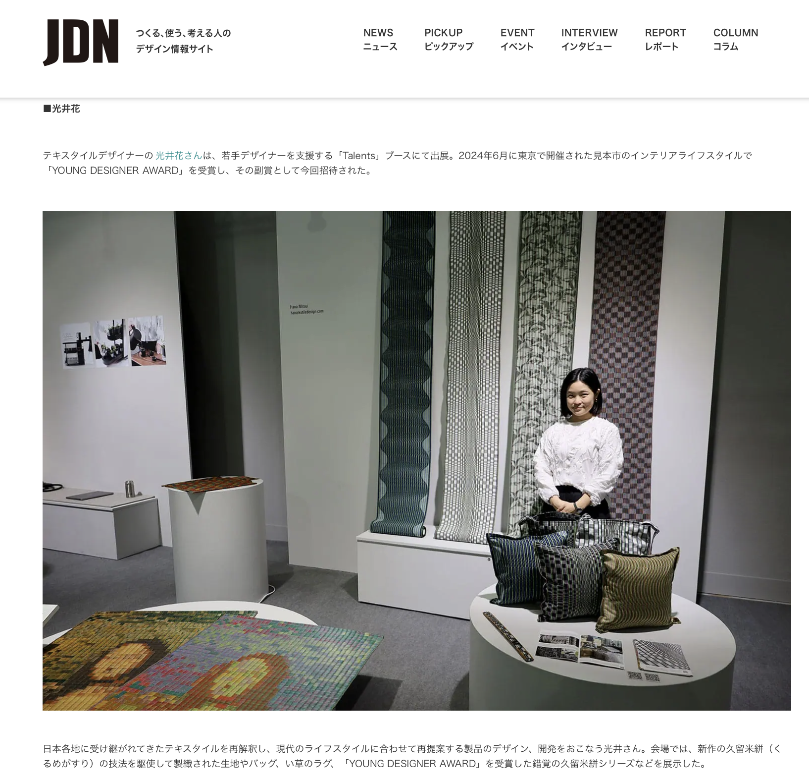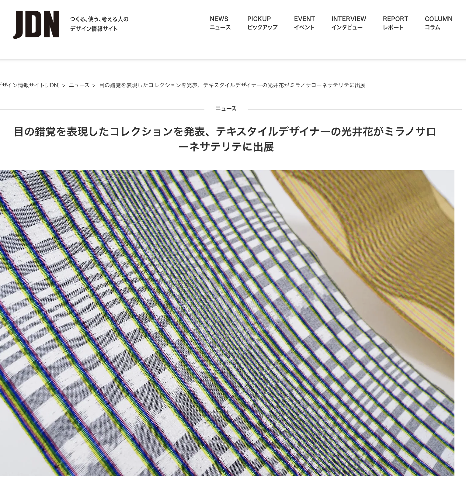 掲載ページ: 目の錯覚を表現したコレクションを発表、テキスタイルデザイナーの光井花がミラノサローネサテリテに出展